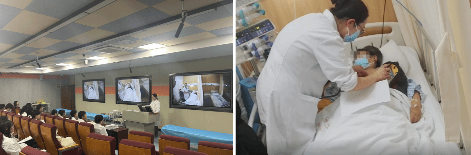 以医教协同为主线,以临床医学实验实训中心和附属医院、教学医院教学全场景为实体,智教云平台为网络媒介,构建智慧医教平台。开放平台资源,以学生为中心打造高效课堂;将平台PC端、手机端分别嵌入信息门户2.0、“今日校园”APP,建立双预约通道;根据实验室场景及开放项目特点设置预约时段及人数,通过同伴互助系统实现学生实训互评,预约与互评记录纳入《诊断学》《外科手术学》《临床实用技能学》等实践课程形成性评价。运用信息化技术,将临床手术室、技能训练室等与校本部智慧教室联通,开展手术示教、教学查房、病例讨论等远程交互教学,将临床诊疗过程和规范立体化呈现,拉近课堂与临床距离。面向本科生、实习生开展观摩式、沉浸式教学,促进临床优质实践教学资源实时、互动、共享,推动在线与在校、教师与学生、理论与实践“三同步三互动”,以信息技术赋能教育教学。