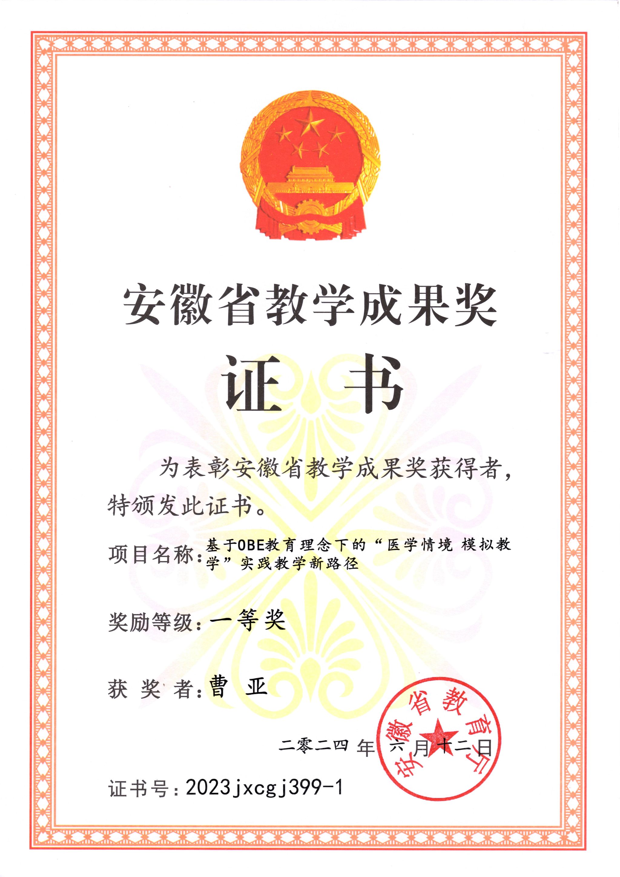 3 | 2020 | 2020年安徽省高等医学教育合作委员会大学生基础医学实验技能竞赛 | 9 |
