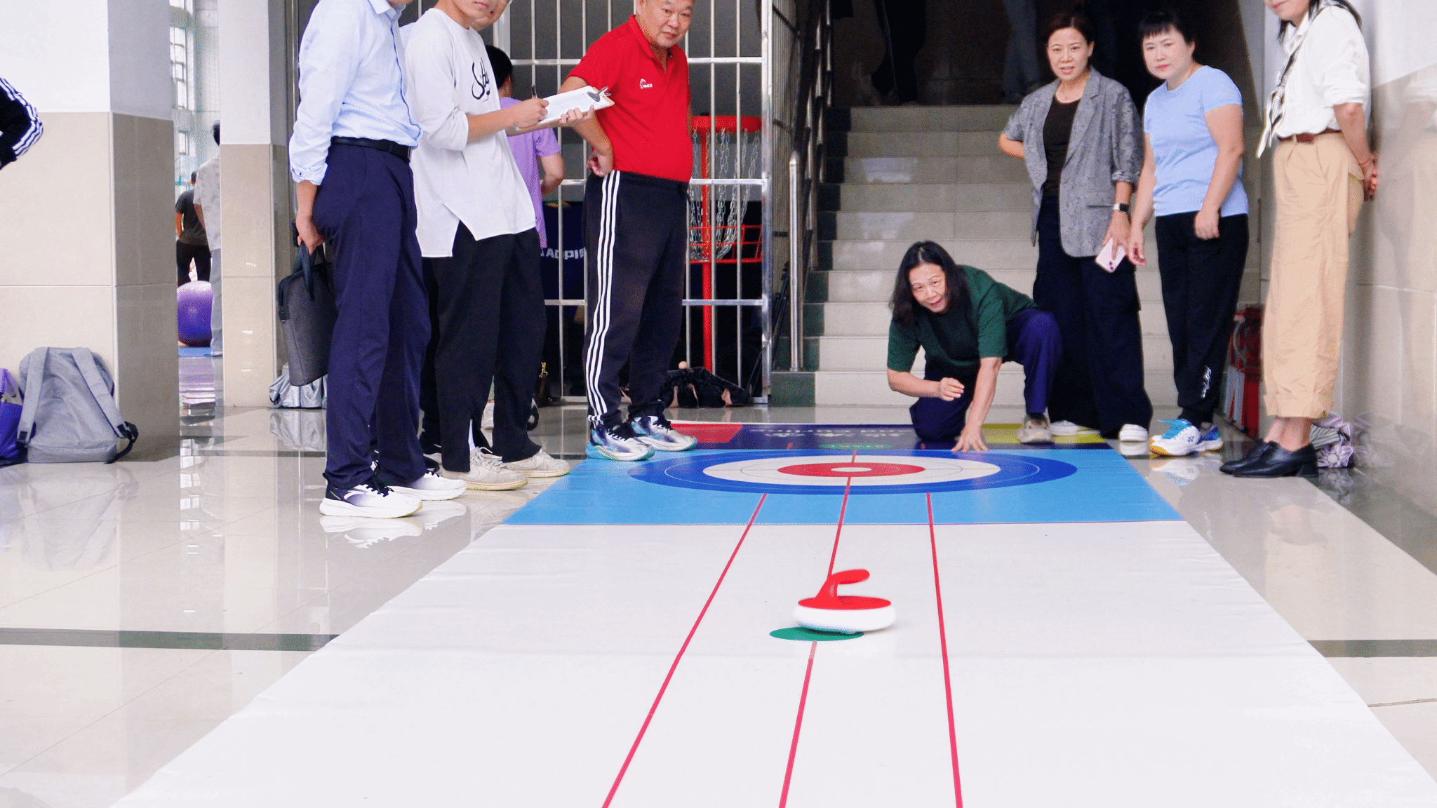 “锚定目标”(旱地冰壶)项目不仅是体力的比拼,更是智慧的较量。选手们手持冰壶,精准计算力度与角度,全神贯注地瞄准、发力,每一次精准的投掷都能引来阵阵喝彩,每一次巧妙的布局都体现了智慧与技巧的碰撞。大家在精准控制与默契配合中向目标靠近,用智慧与耐心完成每一轮挑战,让赛场既充满竞技的紧张感,又不失趣味与优雅。