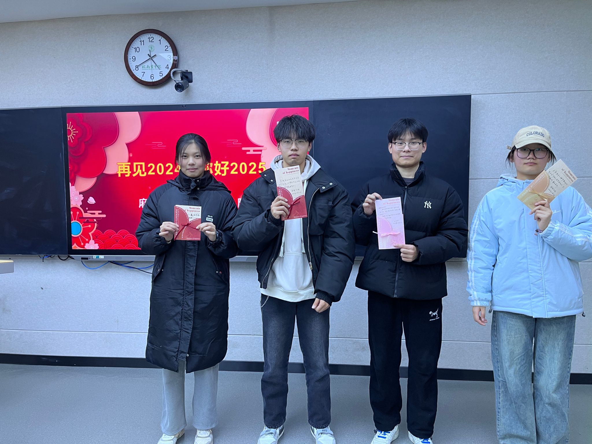 活动最后,盲抽学院老师为同学们精心准备的新年贺卡。以贺卡为媒介,与会老师与学生代表展开深度对话,不仅送上饱含学院深情厚谊的关心问候与新年诚挚祝福,更是结合自身往昔求学路上的风雨兼程,以亲身经历为引,勉励同学们要始终如一地紧盯目标不放松,珍惜每一寸稍纵即逝的光阴,强化自我规划意识,有条不紊地铺就成长之路。
