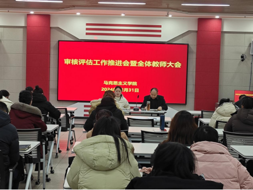 2024年12月31日上午,马克思主义学院在虚拟仿真中心召开新一轮教育教学审核评估工作推进会暨全体教师大会。学院党总支书记邹莹,副书记、院长陶庭马,副院长张婧及全体教师参加会议,会议由邹莹主持。