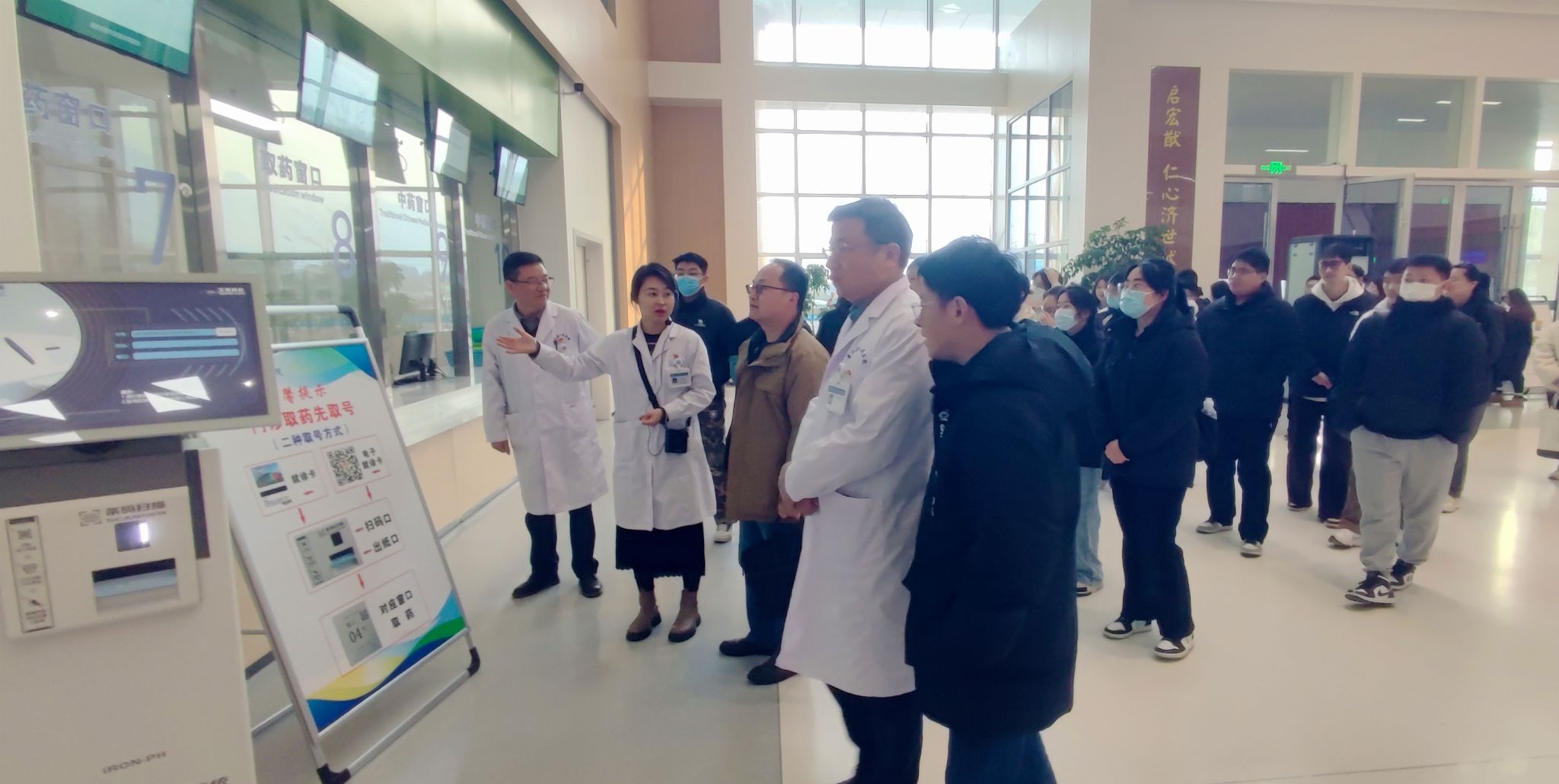 洽谈会后,青阳县人民医院党委书记王晓为、院长丁江水、副院长徐良斌带领师生实地参观了医院新院区门诊大楼、住院部等相关诊疗设施和环境。通过实地参观走访,同学们对医院干净舒适的医疗环境、先进的硬件设施、积极向上的医院文化有了更直观认识。