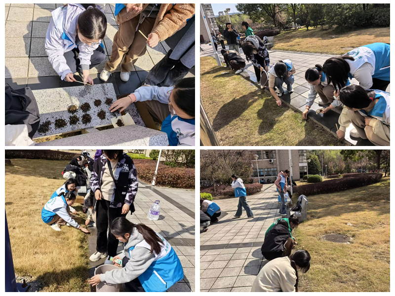 绿韵春日,与校园同行。3月19日下午,学院“青荷”志愿服务队志愿者们将目光聚焦校园,积极参与校园环境美化行动。活动期间,大家分工协作,在滨江校区(北区)1#实验楼附近道路旁种植“除虫菊”、清理杂草,为校园增添了一抹生机与活力。此次活动不仅美化了校园环境,也增强了同学们的环保意识,营造了人人参与、共建美丽校园的良好氛围。大家纷纷表示,校园是大家共同的家园,美化环境是每个人的责任,呼吁更多同学关注校园生态,共同守护绿色校园,为生态文明建设贡献青春力量。