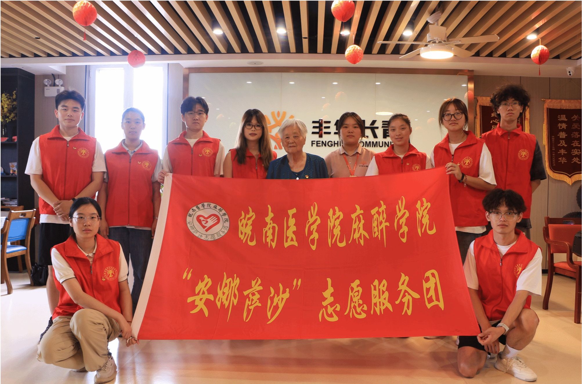为深入学习贯彻习近平新时代中国特色社会主义思想和党的二十大精神,落实习近平总书记在五四青年节对全国广大青年的寄语,6月30日,麻醉学院“安娜萨沙”志愿服务团走进弋江区丰华康养中心开展暑期“三下乡”社会实践活动,旨在传承红医精神,引导团队成员争做新时代有理想、有担当的医学生。