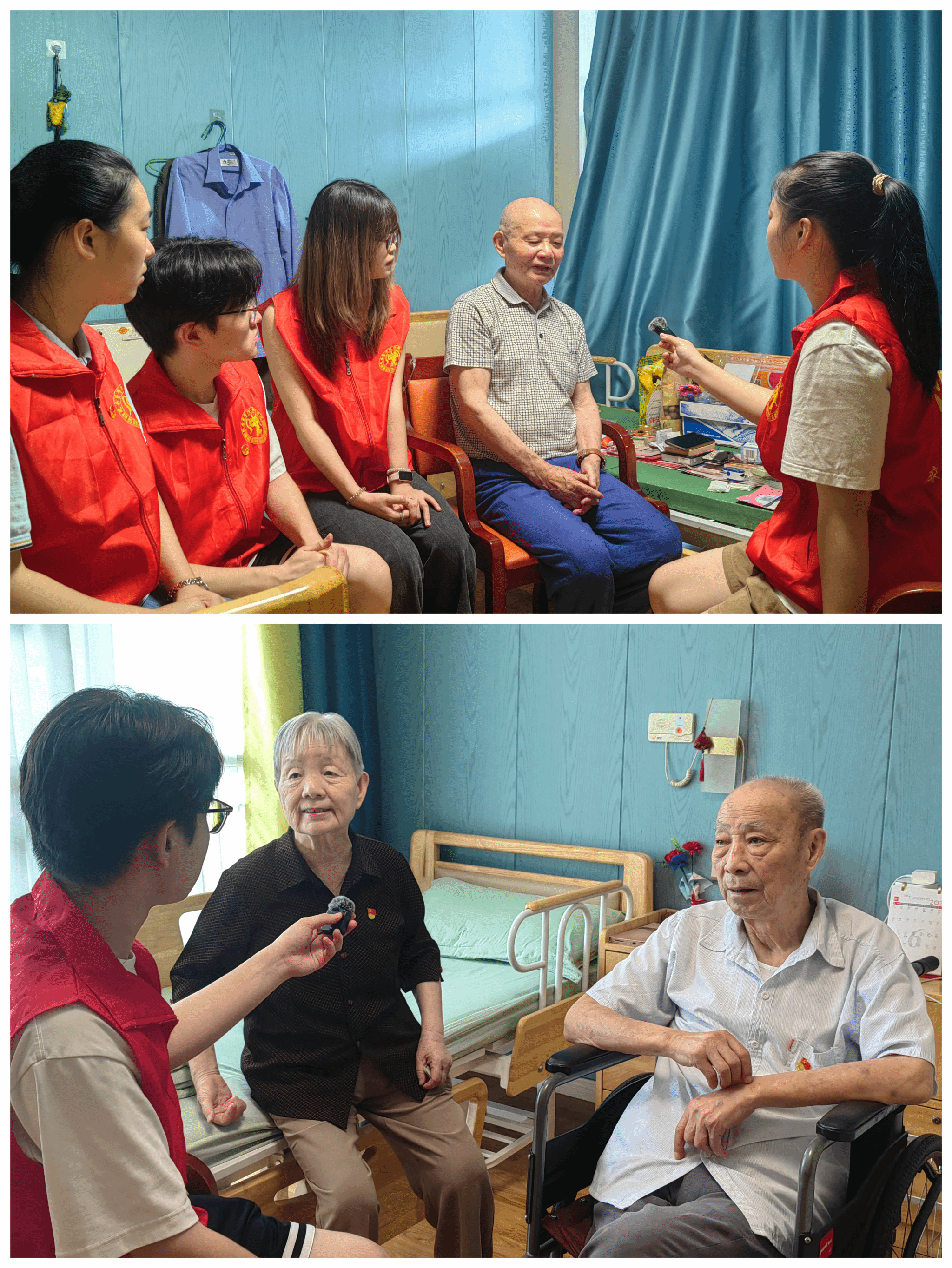在“七一”建党节来临之际,志愿服务团成员走访并采访了居住在康养中心的老兵与老党员。他们当中,有曾深耕教育一线的老校长,有秉持活到老学到老理念的老医务兵,还有一心向党的老党员夫妇。服务团成员围绕他们过往经历、入党入伍的初心,以及对“红医精神”的理解等方面展开采访,深入了解老一辈的光辉岁月。老医务兵汪爷爷的行伍经历启示我们,要热爱学习、坚持学习,珍惜当下优越的学习条件。老校长王奶奶则嘱托大家,要传承“红医精神”,紧密跟随中国共产党的领导,努力学好本领,为祖国作出更多贡献。