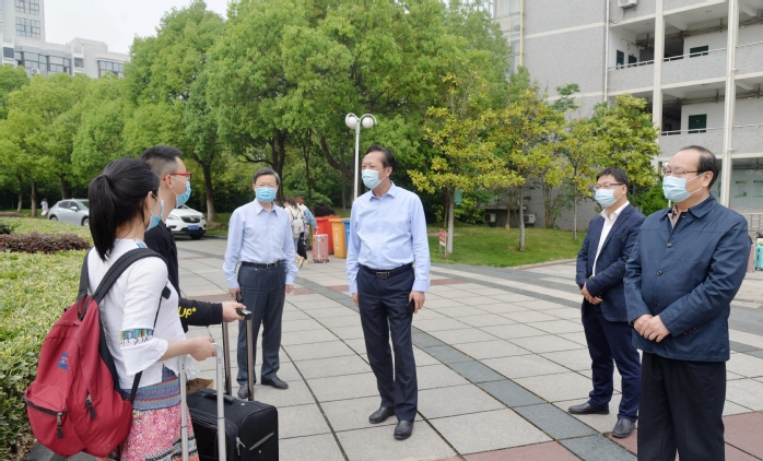 5月7日下午,安徽省教育厅副厅长储常连,高教处处长梁祥君,先后来到学生报到点、临时隔离观察点、学生食堂和宿舍等处,对学生返校报到过程中的重点环节、风险点和防控点进行现场督导,校党委书记章尧,党委副书记、院长廖圣宝,副院长吴金月陪同督导。5月4日开学前,芜湖市教育局党委书记、局长江汛和芜湖市教育局党委委员、副局长周自强深入滨江校区开展现场督导,副院长吴金月陪同督导。